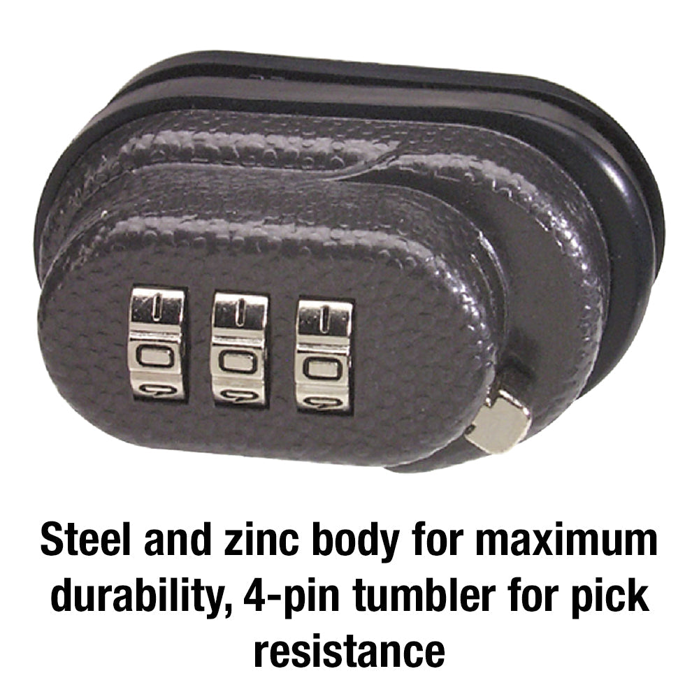 The Master Lock No. 94DSPT Set Your Own Combination Trigger Lock features a steel and zinc body for maximum durability. The protective rubber pads protect gun’s finish from marring or scratching. The 3 dial combination security offers keyless convenience. The Limited Lifetime Warranty provides peace of mind from a brand you can trust.