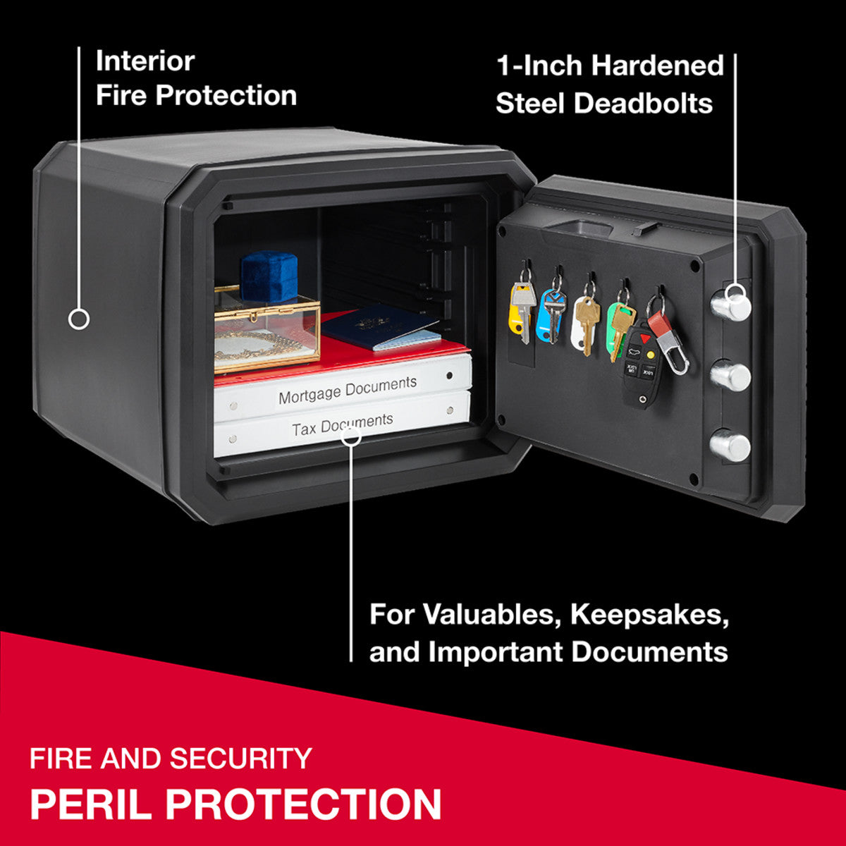 Automatic steel bolts and a pry-resistant hinge bar reinforce the door against forced entry, making this fire safe a reliable choice for both home and office environments. Whether you're securing documents, digital media or personal keepsakes, this home safe is built to defend without compromise.