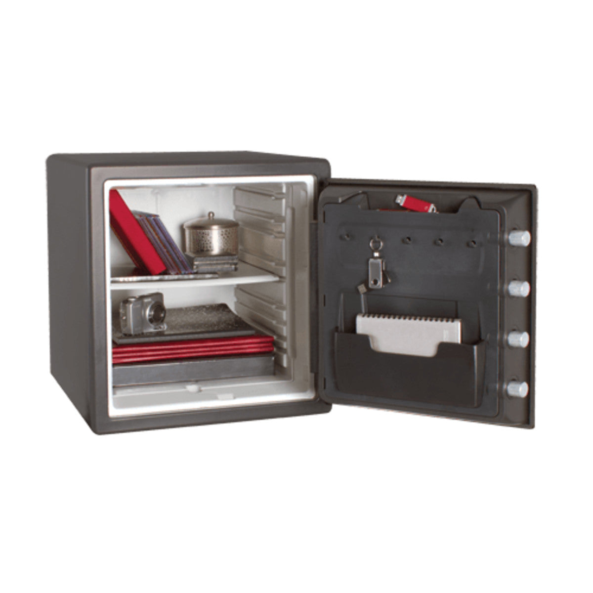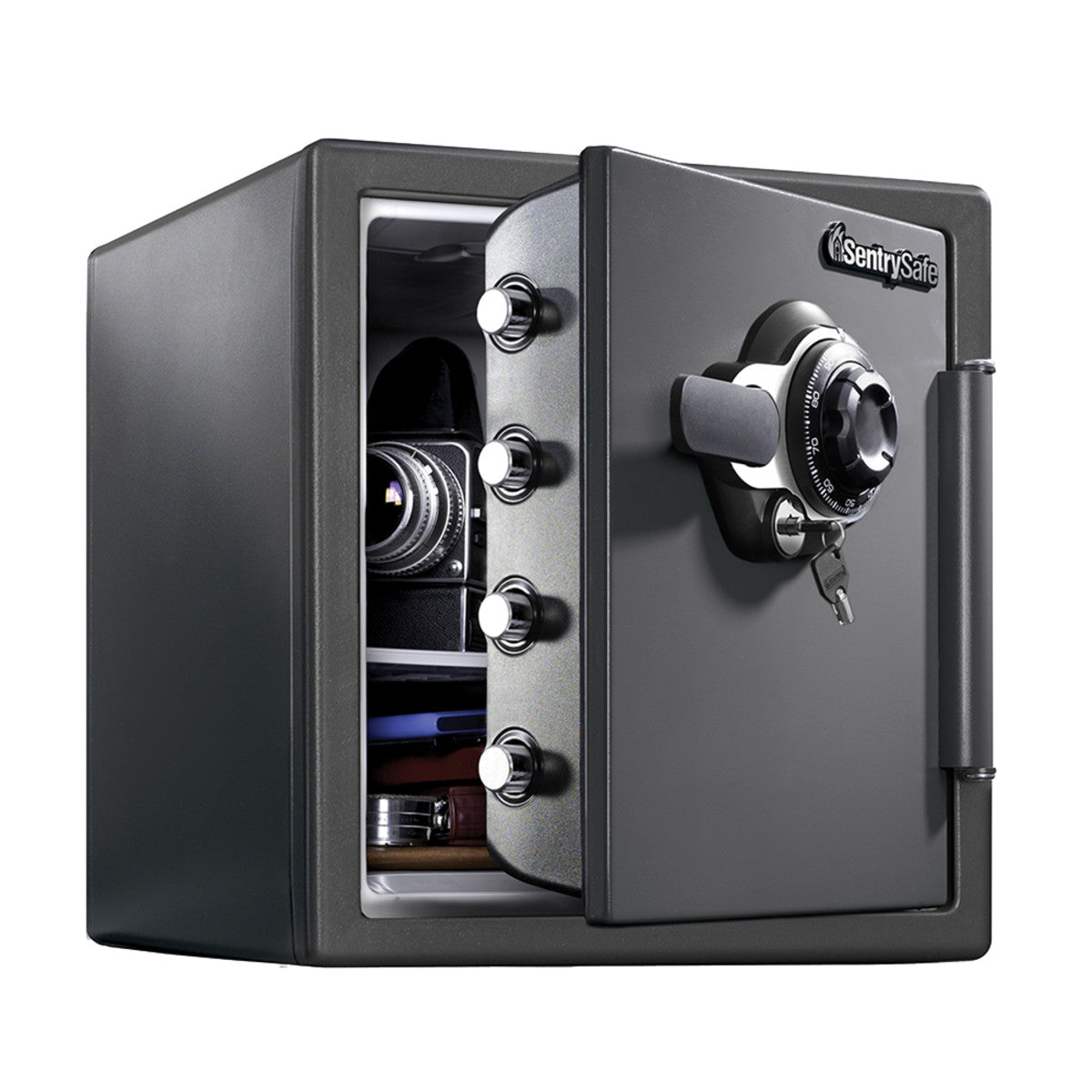 The SentrySafe Large Steel Fireproof Waterproof Safe with Combination Dial and Dual Key SFW123DSB is built for those who take ownership seriously. This waterproof fireproof safe is engineered to protect your most critical documents, digital media and valuables from fire, water and theft — without compromise. Its solid steel body and dual locking system form a barrier against forced entry. UL-classified to endure flames up to 1700°F for one hour and ETL-verified to resist water for 24 hours, this fireproof safe is ready for real-world disasters. Whether you're storing tax records, USB drives or family passports, this home safe keeps them secure and accessible. Inside, you’ll find an adjustable shelf, key rack and door pocket for organized storage. Outside, the pry-resistant hinge bar and bolt-down hardware add another layer of defense. This fire safe it stands for your commitment to protecting what matters.