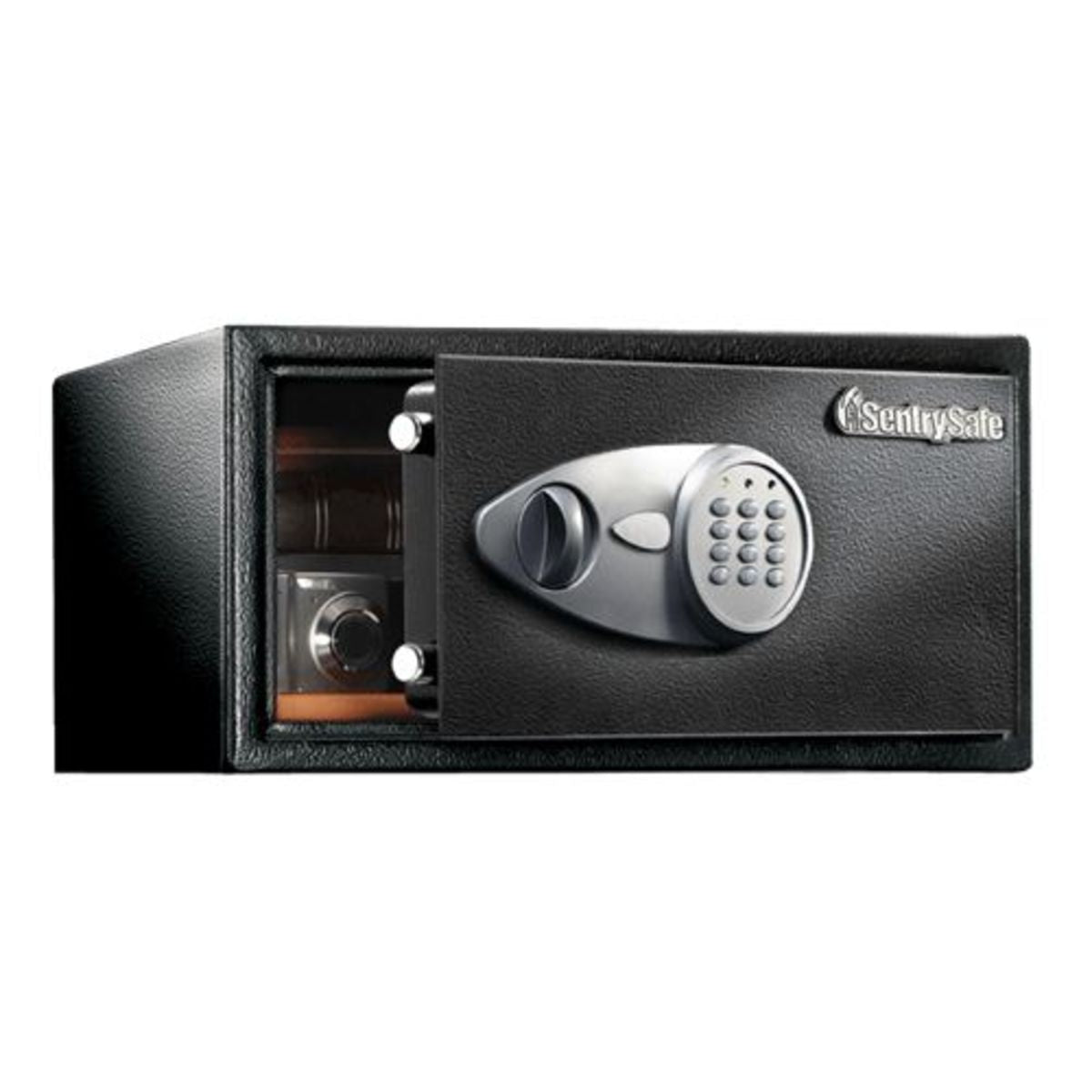 The SentrySafe Digital Security Safe X105 offers maximum security for your precious valuables and electronics with solid steel construction, bolt down hardware, and a digital lock with key. The X105 also includes a removable shelf to help you keep your belongings organized.